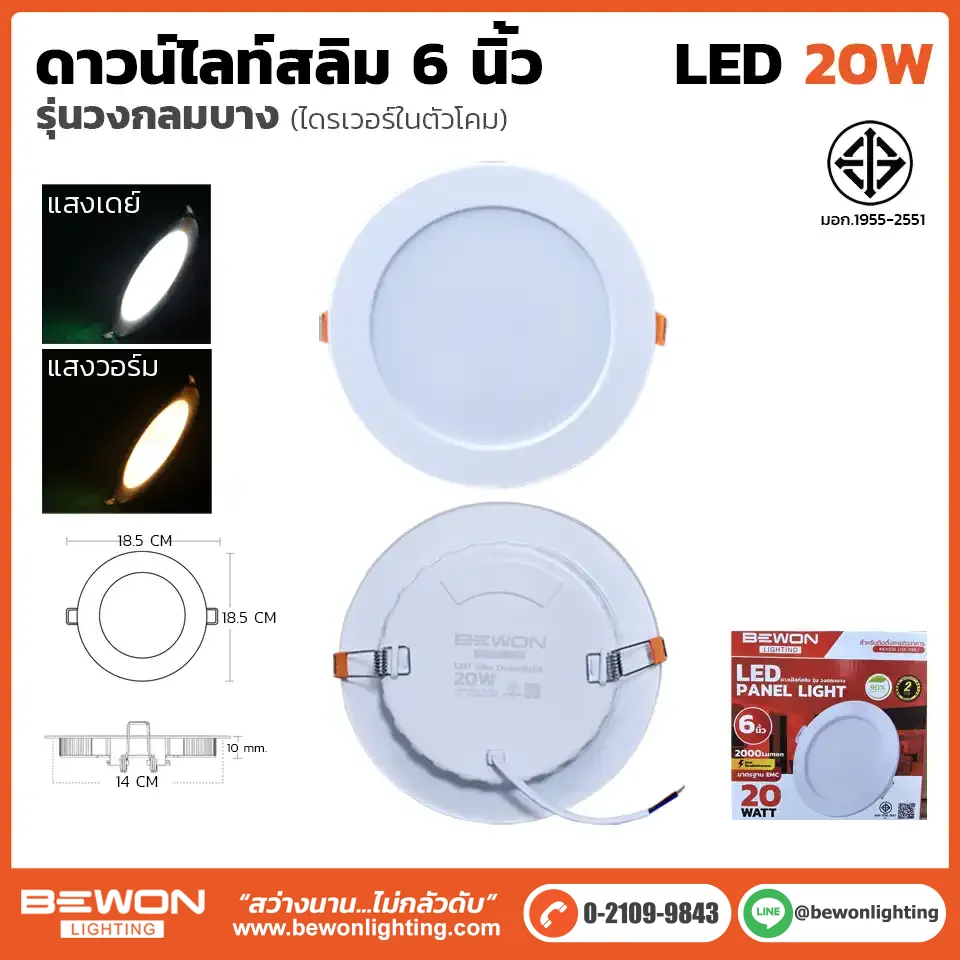 • ขนาด 20 วัตต์ เมื่อเปรียบเทียบกับหลอดไส้ประหยัดไปกว่า 80%
