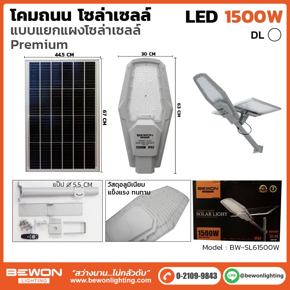 โคมถนนโซล่าเซลล์แผงแยก 1,500W