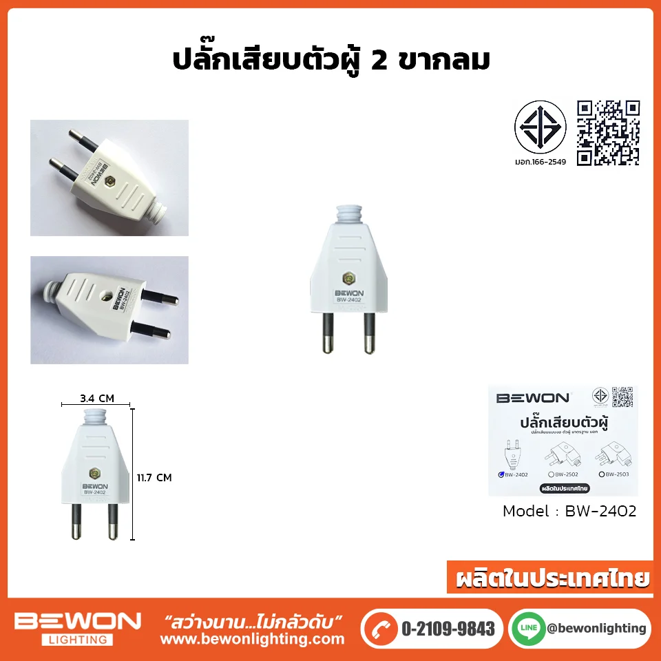 • ตัวปลั๊กผลิตจากพลาสติกไม่ลุกติดลามไฟ