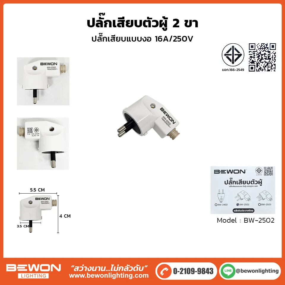 • ตัวปลั๊กผลิตจากพลาสติกไม่ลุกติดลามไฟ