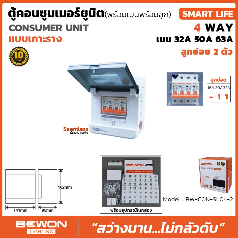 | SPECIFICATION ตู้คอนซูมเมอร์ยูนิต เกาะราง SMART LIFE 2 ช่อง | |