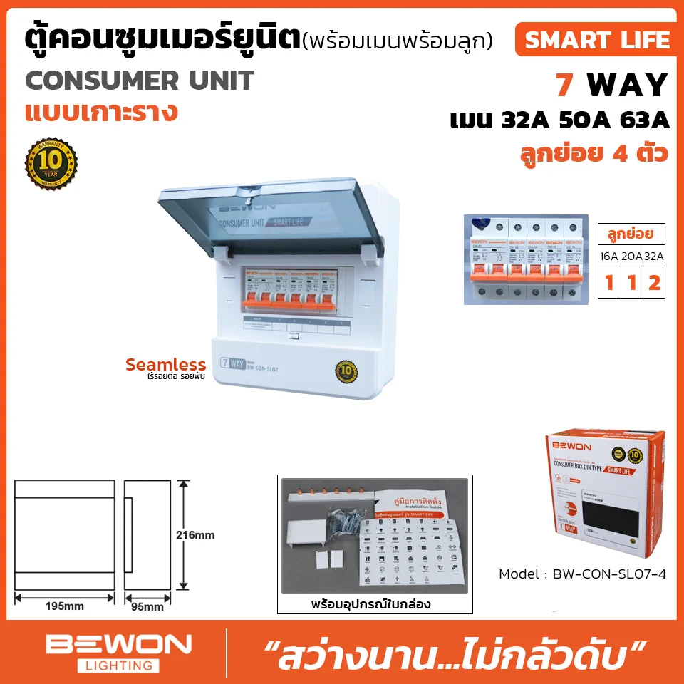 | SPECIFICATION ตู้คอนซูมเมอร์ยูนิต เกาะราง SMART LIFE 4 ช่อง | |