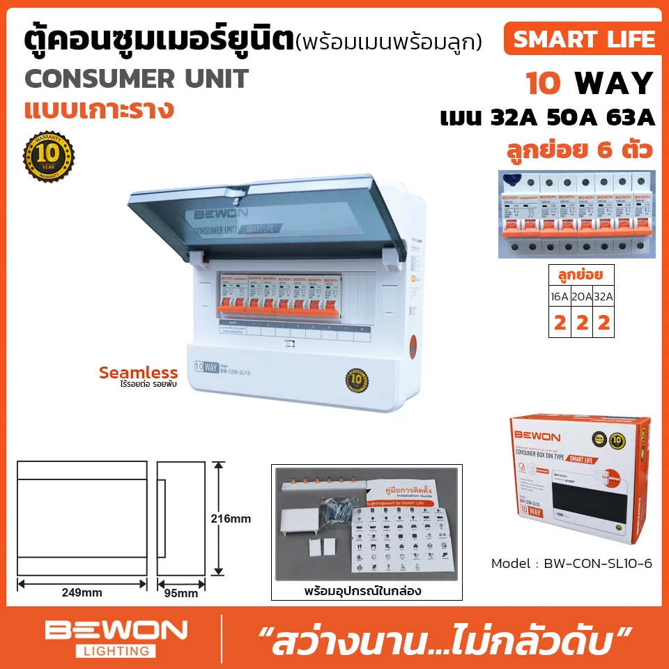 | SPECIFICATION ตู้คอนซูมเมอร์ยูนิต เกาะราง SMART LIFE 6 ช่อง | |