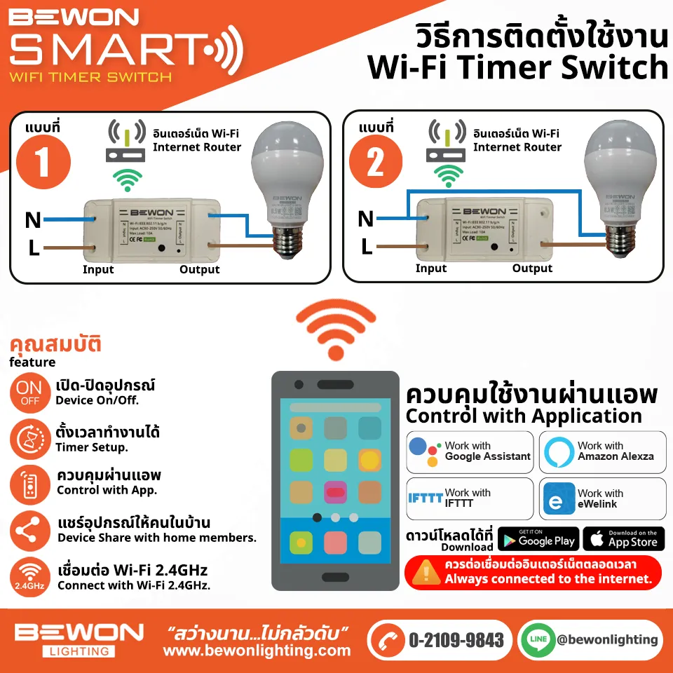 • รองรับผ่านแอพพลิเคชั่น eWeLink, Google Assistant, IFTTT, Amazon Alexa